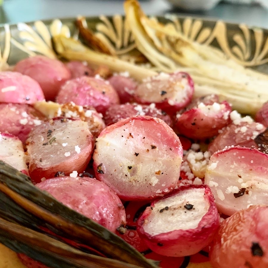 Roasted radish with garlic and endives