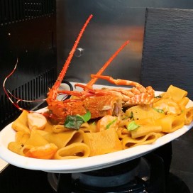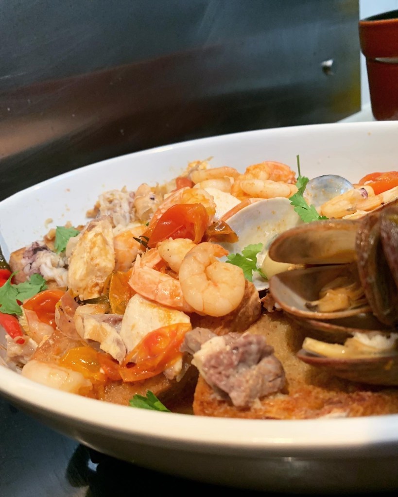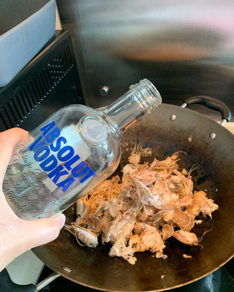 25. Add several ladles of pasta water, and cook on medium-high heat for 5-10 minutes until liquids are absorbed and pasta is well coated with ink