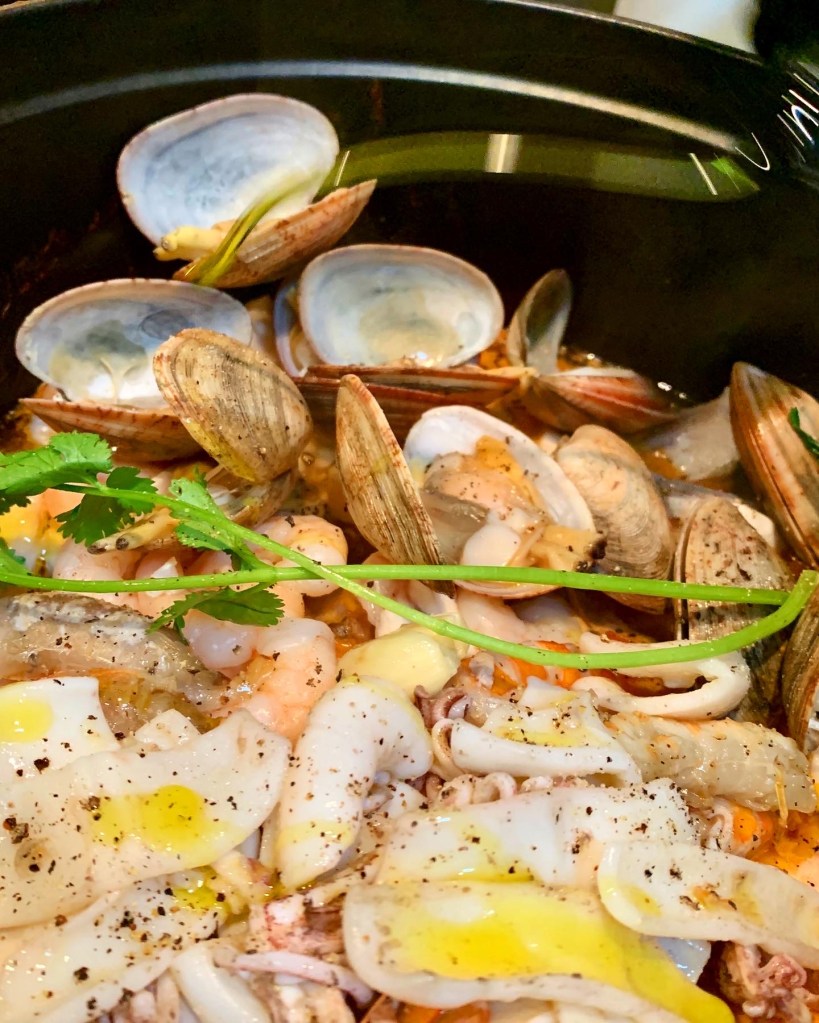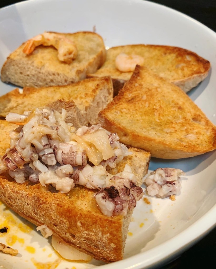3. Combine shallots and garlic in pan with plenty of olive oil, and infuse on low heat while you clean the cuttlefish