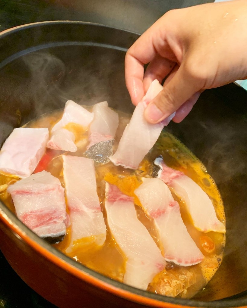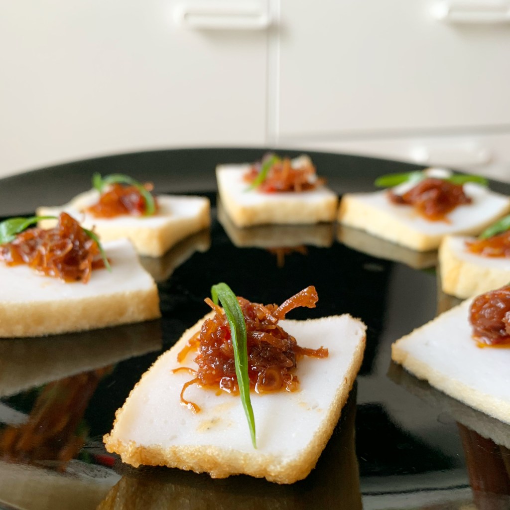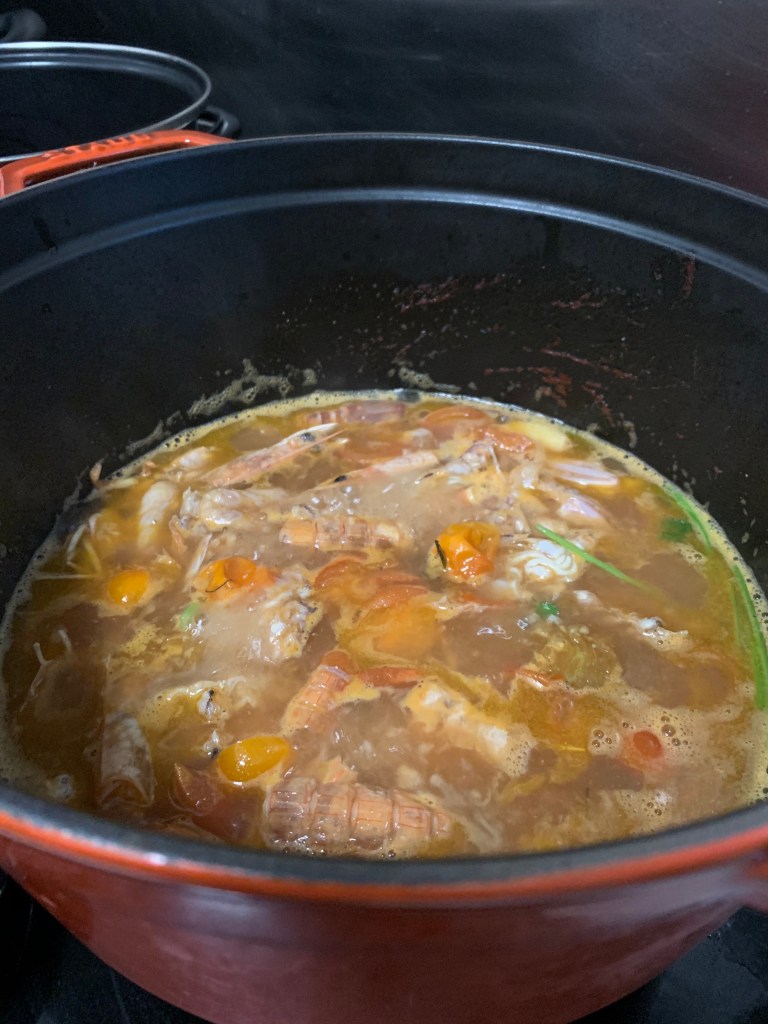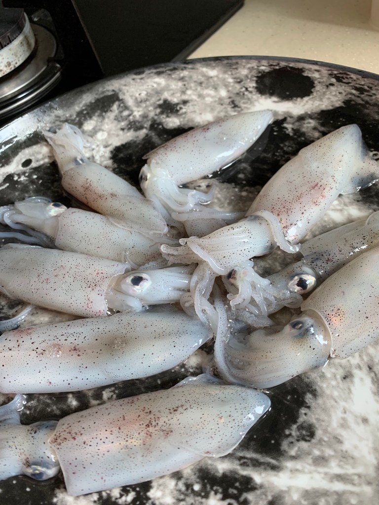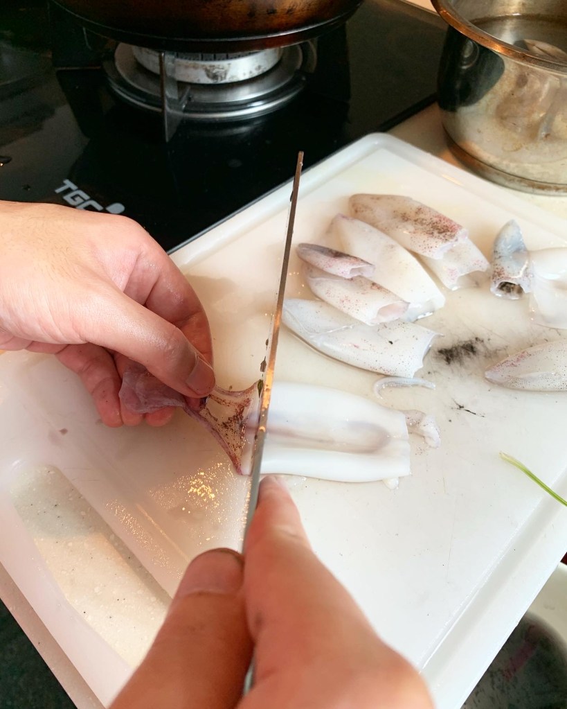 Went to the market today and saw there were a lot of cuttlefish! Must be harvest season. Unfortunately most were alout of our price range (the ones we saw were huge; probably for 6-8 people). Instead we found this small one that has passed already, decent size for 2 people (even 3!). Sadly, it was cut open already and ink sac was harvested. As a result, it went for HKD30 only, which is probably half its usual price. Good thing we had backup ink at home (the store-bought kind). This way of cooking this dish is from the South, where plenty of tomato is added, rather than just the ink. The result is less “pitch black”, but more tasty in our opinion.