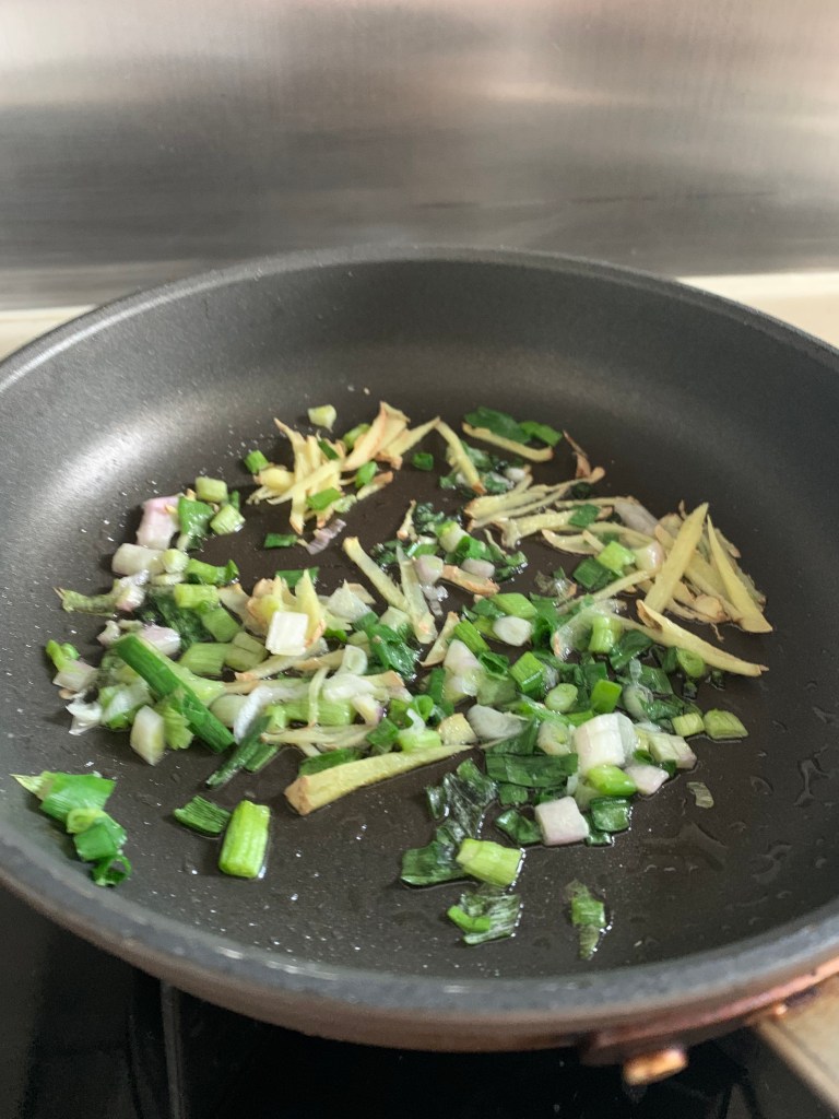 15. Once liver is browned and fragrant, check seasoning, then pour everything in the pan into the onions