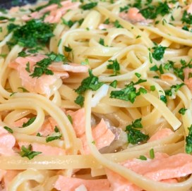 Several slices of frozen smoked salmon (there’s no need to use the fresh, expensive kind for cooking!)